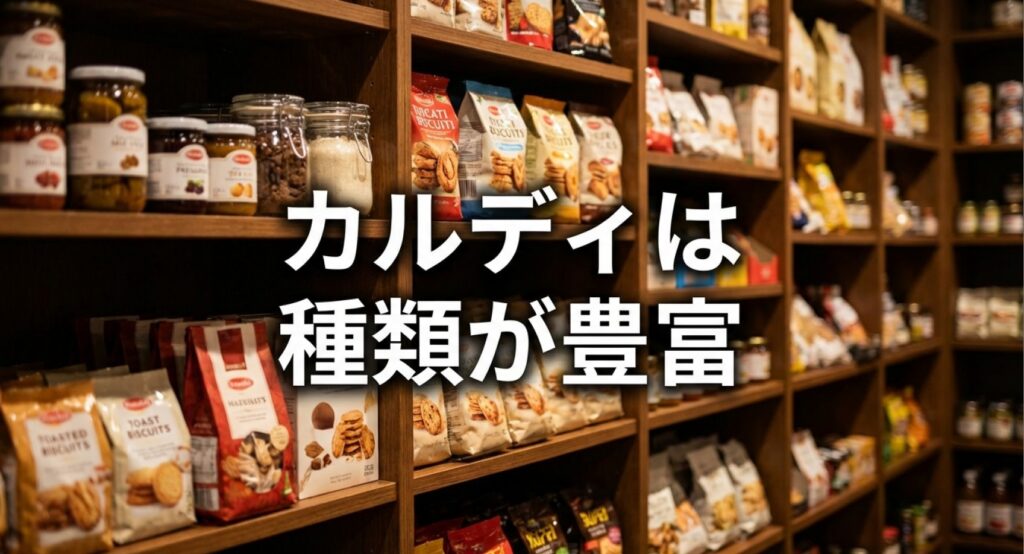 カルディはビスケットや瓶の種類が豊富